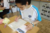 高等部3年生は、現場実習の直前ということで、一人一人が現場実習に向けてどのような目標をもって取り組んでいくのかを真剣に話し合っていました。また、中3の生徒たちは、廊下に掲示してあった修学旅行に関する学習プリントにも興味を持ち眺めていました。