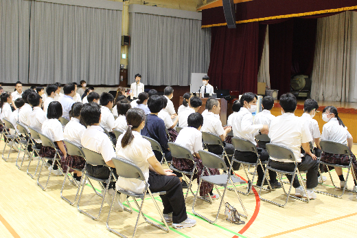 授業の最後は、本校で歌い継がれている『ファイトの歌』を歌いました。1年生を応援する気持ちや互いを応援する気持ちを込めてみんなで歌いました。