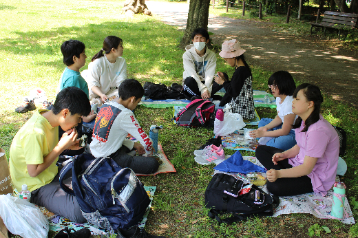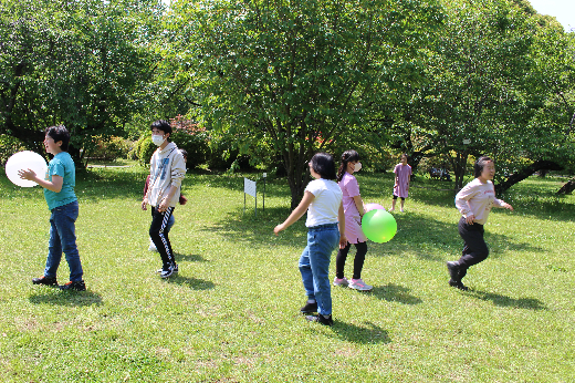 お弁当を食べた後は、新緑の眩しい園内で鬼ごっこや風船遊びをしたり、散策をしたりして楽しんでから学校へ帰ってきました。