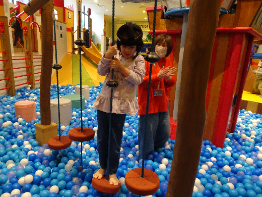 9月に入ってすぐ教育実習の先生が2人来てくれました。2週間の実習で一緒にうんどうあそびをたくさんしました。色々な感触の素材を用意して、手や足でそして体全体んで感じながら遊べるように工夫してくれましたよ。感触探検ができるサーキットはそれぞれ子がお気に入りのステーションをみつけていました。