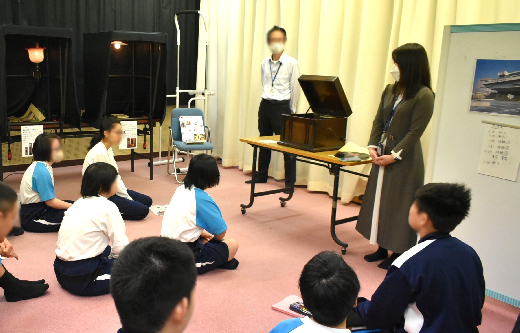 普段は目にすることのない昔の道具を前に、生徒たちは目を輝かせながら学芸員の先生方の話を聞いたり、手に取って動かしてみたりと、昔のくらしを支える道具に触れて、面白さや興味を持って活動する様子が見られました。