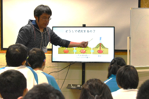 11月7日に理科の出前授業を行いました。今回は、理科で学習している「土地のつくり」の学習を深めるために埼玉県立川の博物館から羽田武朗先生をゲストティーチャーに招いて学習しました。