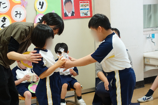4月22日(金)に、新入生歓迎会を行いました。 小学部プレイルームに集まり、新しい1年生4名を歓迎しました。